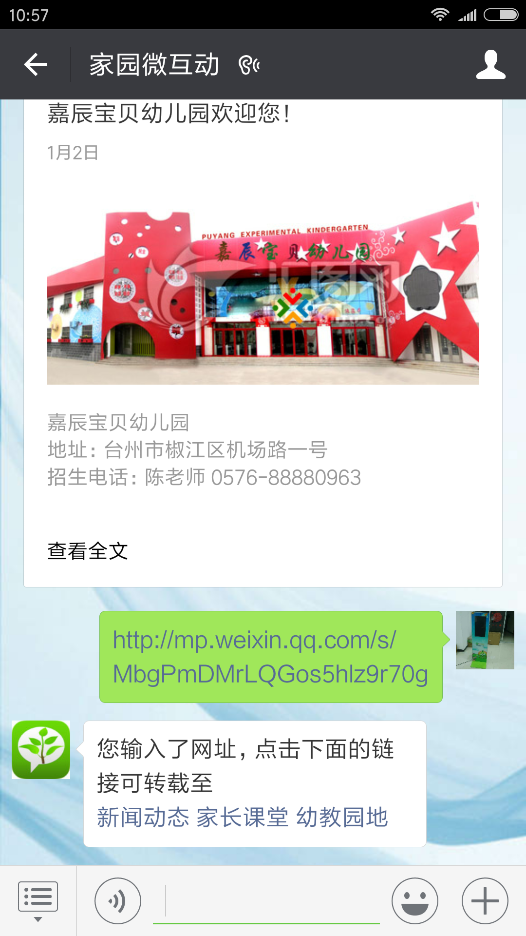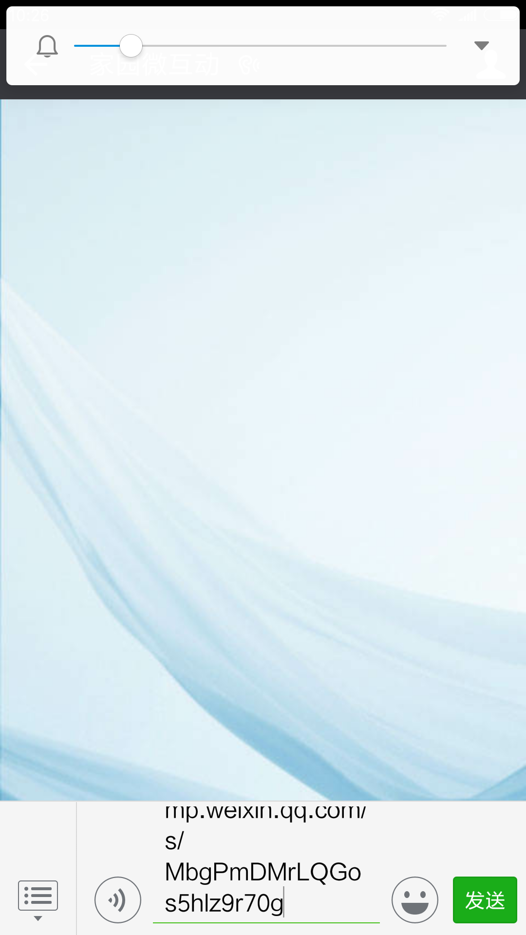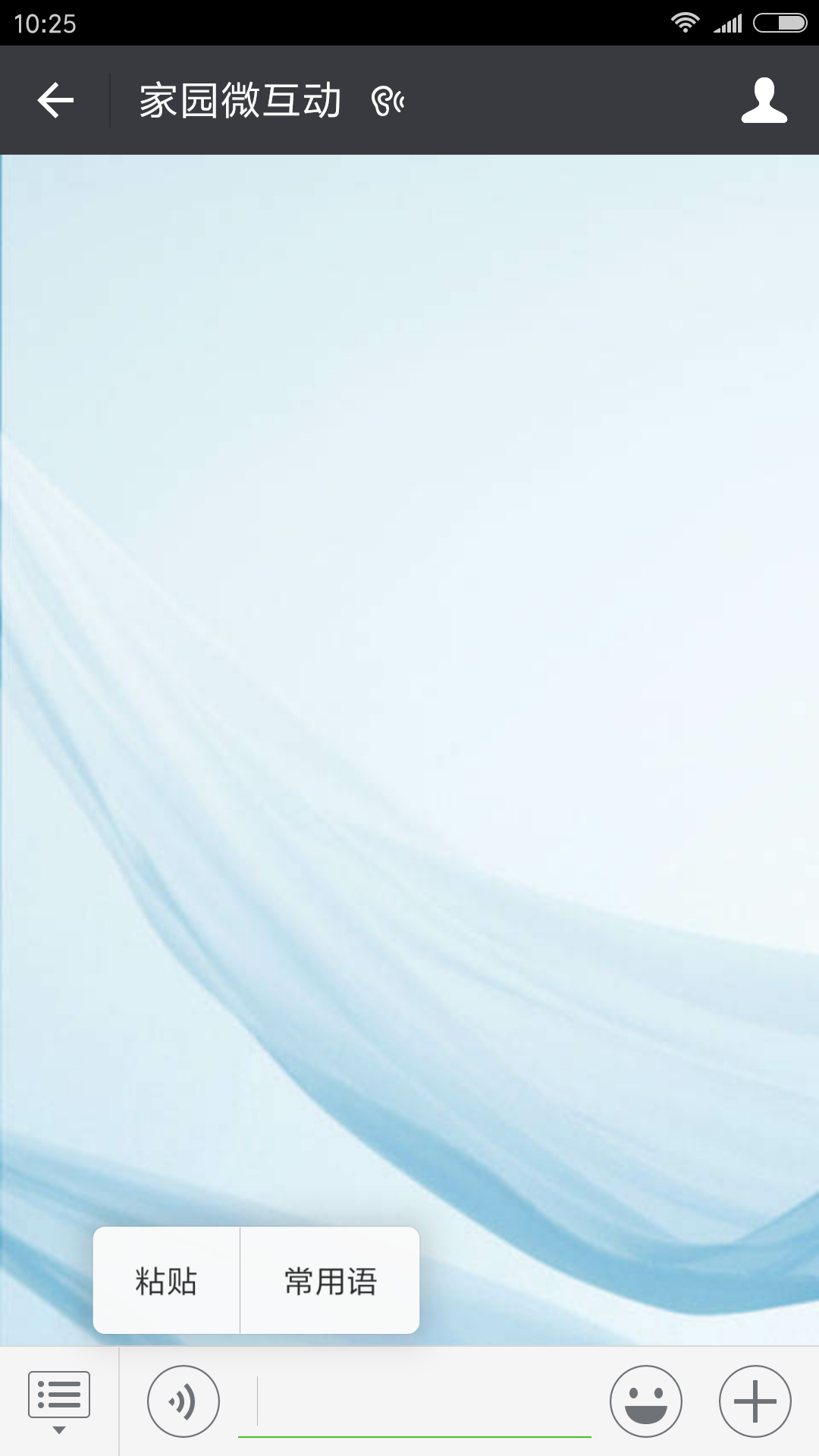 2 打开家园微互动, 在输入框里长按两秒,点击粘贴,再点击确定或发送。