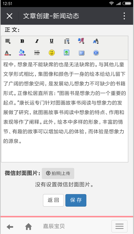 7 返回到主页,点击底部的微官网--新闻动态里 就可以查看到刚才编辑并保存的文章。