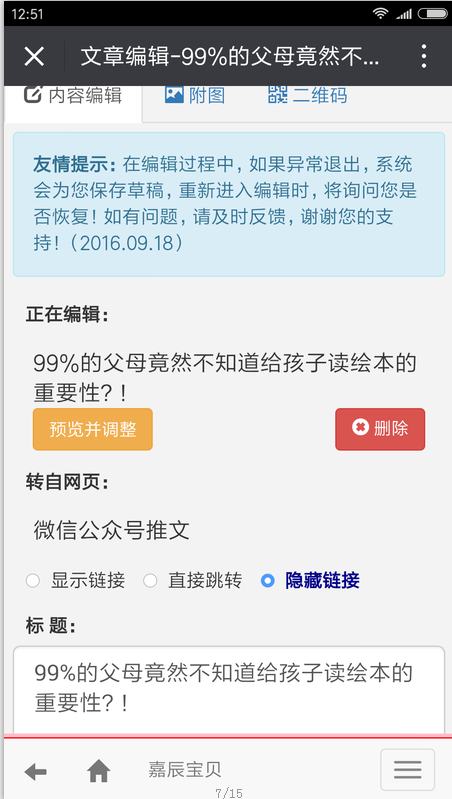 5 点 预览并调整,开始更改或删除此文章的图片。修好后点 保存。